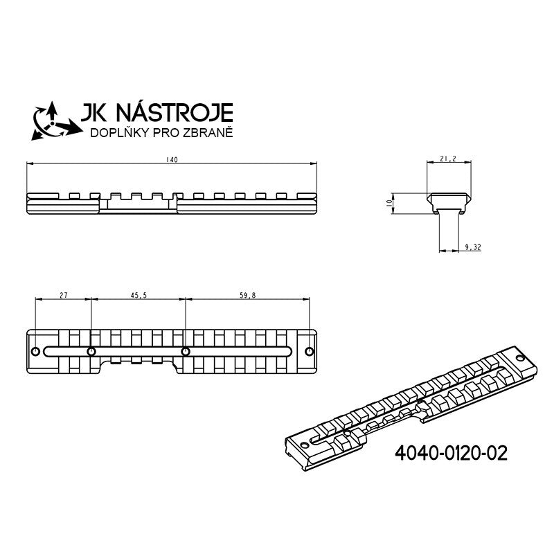 Picatinny šina (baza za optiku) za montažu prstenova s Picatinny sučeljem.