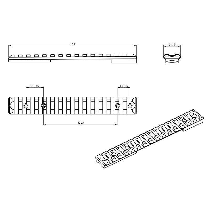 Picatinny šina (baza za optiku) za montažu prstenova s Picatinny sučeljem.