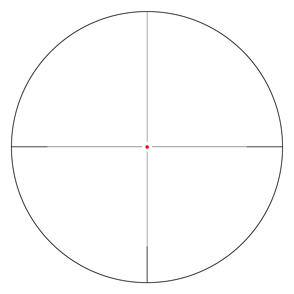 • Paralaksa postavljena na 50 jardi, sustav zaključavanja tureta, 4.5-3.7" udaljenost oka, ugravirani osvijetljeni središnji točka križa.
