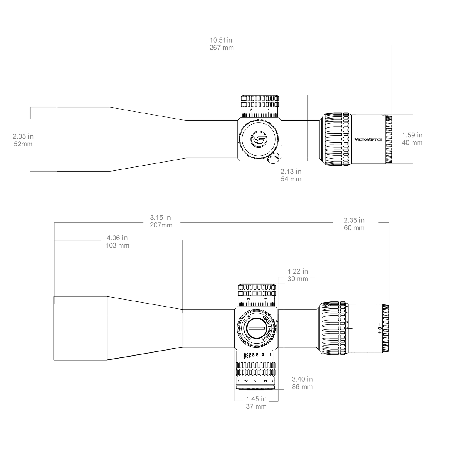 Ovaj nišan ima promjer glavne cijevi 30 mm, a ukupni promjer objektivnog zvona je 44 mm.